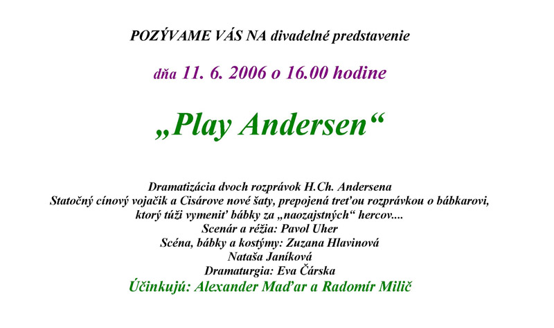 Program zložený z dvoch rozprávok H. Ch. Andersena O cínovom vojačikovi a Cisárových nových šatách je rámcovaný jeho treťou rozprávkou O bábkarovi.