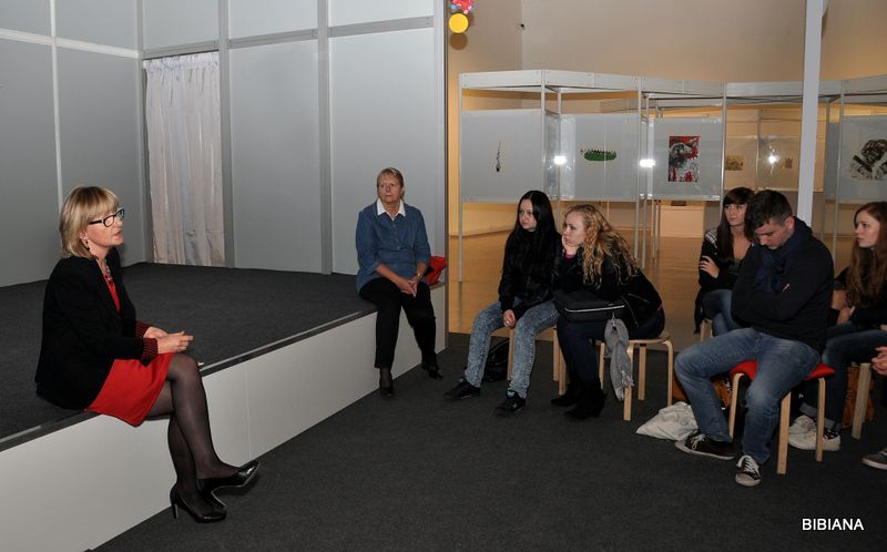 Beseda so študentami katedry mediálnej komunikácie s vedúcou sekretariátu BIB Vierou Anoškinovou.