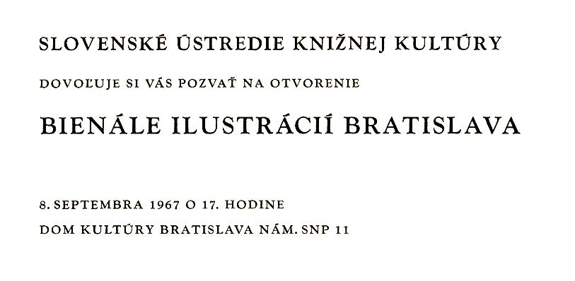 Prvý ročník medzinárodnej prehliadky originálov ilustrácií detských kníh. Okrem súťažnej časti, v ktorej medzinárodná porota rozhodla o udelení jednotlivých ocenení BIB, súčasťou podujatia boli aj viaceré sprievodné výstavy a medzinárodné odborné sympózium.
