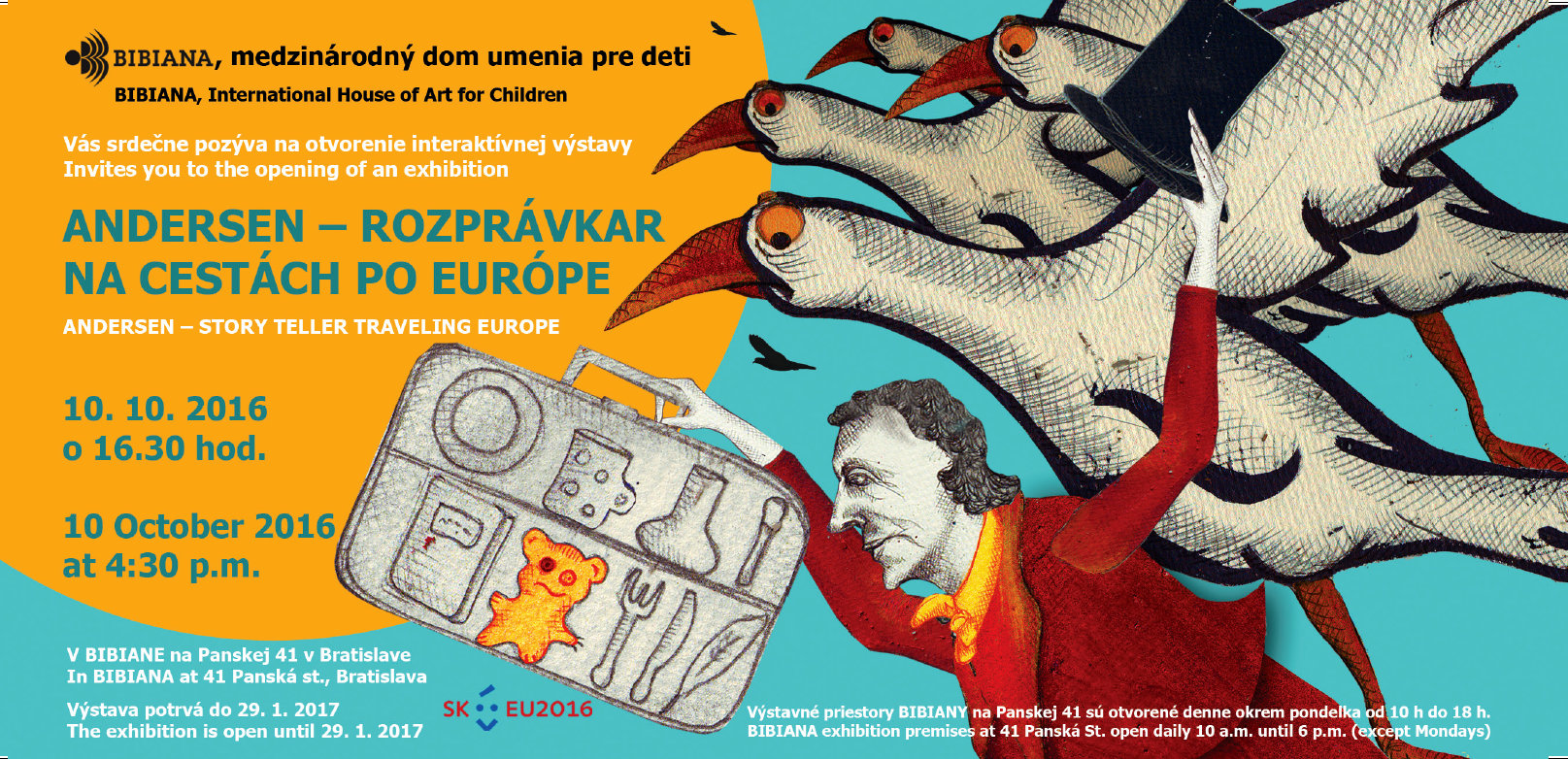 Do pokladnice duševného bohatstva Európy patria nepochybne ľudové rozprávky. Inšpiráciu z nich čerpal aj najznámejší rozprávkar, dánsky spisovateľ H. Ch. Andersen. Na svojich cestách po Európe navštívil veľa krajín, ktoré sú dnes členskými štátmi EÚ. Vďaka časostroju sa vo výstave vrátime do jeho doby a podnikneme s ním objaviteľskú cestu za rozprávkami týchto krajín. Druhá časť výstavy je venovaná najznámejším Andersenovým rozprávkam, ktoré sú inšpiráciou pre ďalších umelcov, spisovateľov, ilustrátorov, ale najmä tvorcov animovaných filmov. Prezentuje nie len knižnú podobu jeho rozprávok v rôznych krajinách EÚ, ale aj ich filmové spracovanie. Návštevník tu nájde množstvo ukážok z animovaných filmov, ale aj iné zábavy a hry, a to všetko v inšpiratívnom farebnom prekrásne umelecky spracovanom prostredí výtvarníka Martina Dubravaya.