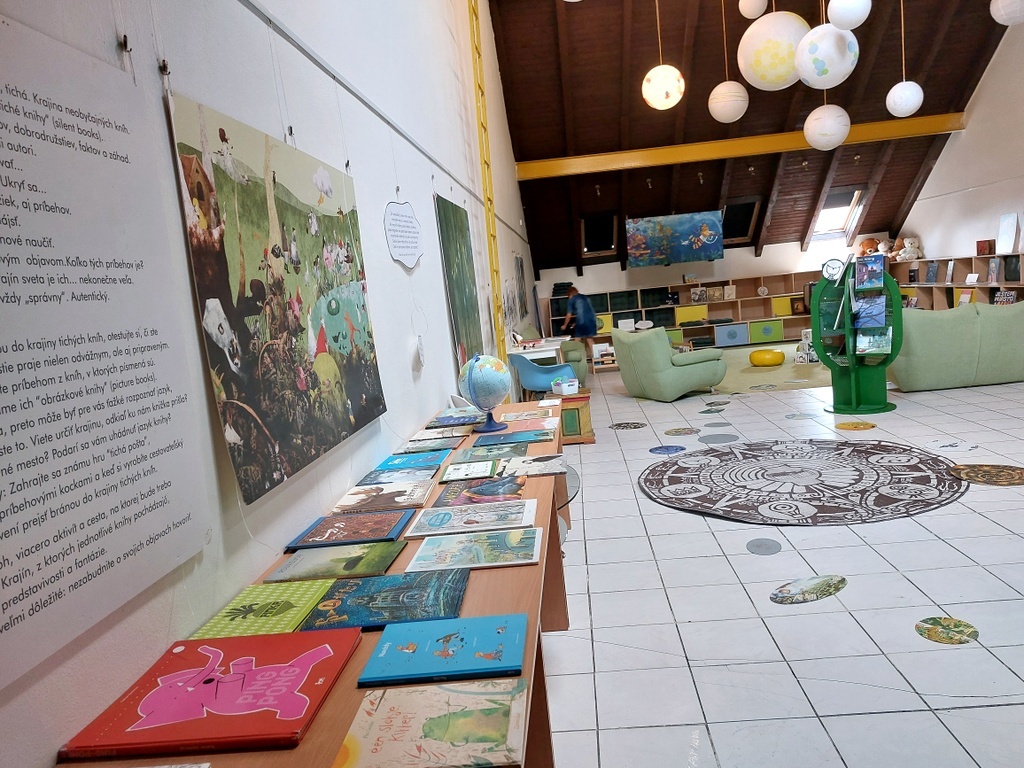 Hravá a inšpiratívna výstava ponúka cestu svetom „tichých“ kníh, pochádzajúcich z rôznych krajín sveta (európske, americké, arabské, japonské, thajské, kórejské, austrálske). Tiché knihy, tvorené len z obrázkov, bez textu, predstavujú u nás málo známy žáner detskej literatúry. Detský návštevník má jedinečnú príležitosť k hľadaniu, objavovaniu a poznávaniu príbehov ukrytých v obrázkoch. 130 titulov z celého sveta – od leporel cez obrázkové knihy pre najmenších až po dobrodružné príbehy a grafické romány – prináša široké spektrum pozoruhodných kníh rôznych umeleckých žánrov od výnimočných svetových ilustrátorov. Vďaka aktivitám (cestovateľský denník, príbehové kocky, dotyková hra, tieňové divadlo, puzzle a skladačky) iniciuje spoločné hry, ale aj rozhovory a zážitkové učenie pre jednotlivcov, rodiny i kolektívy.
