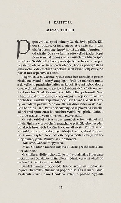 • Formát ISBD(M): Pán prsteňov 3 = / J. R. R. Tolkien ; prekladateľ: Otakar Kořínek - Bratislava : Vydavateľstvo Slovart , 2002. - 430 s.; ; 24 x 15cm ISBN 80-7145-608-X